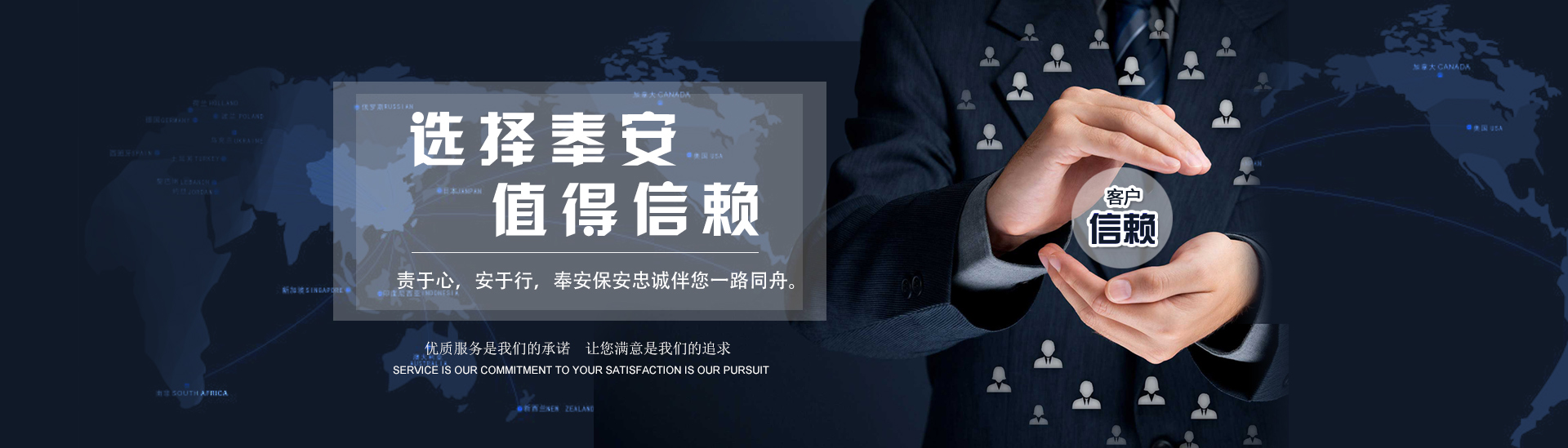 以客為尊 :客戶是公司生存和發(fā)展的決定因素,沈陽奉安保安服務(wù)有限公司堅持以客戶為上帝的經(jīng)營理念,全力貫徹“以客為尊、以誠待客”的服務(wù)宗旨